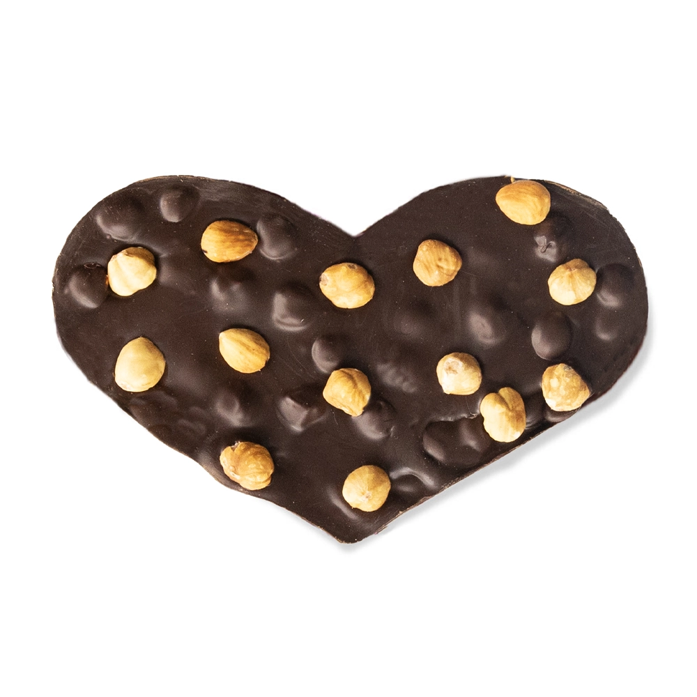 Pure chocolade en hazelnoten: een match made in heaven. Stop ze samen in de vorm van een hart en je hebt het perfecte cadeau voor ieder moment! Ons chocoladehart met hazelnoten maken we met eerlijke Belgische chocolade en is helemaal vegan.