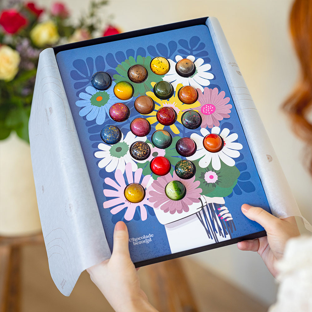 Bewaaradvies – Bewaar je bonbons op een koele, droge en donkere plek, het liefst in het originele zwarte doosje. Let op: bewaar de bonbons niet in de koelkast. Onze bonbons zijn circa 6-8 weken houdbaar. In het meegeleverde smakenboekje vind je een exacte houdbaarheidsdatum. Meer weten over chocolade bewaren?