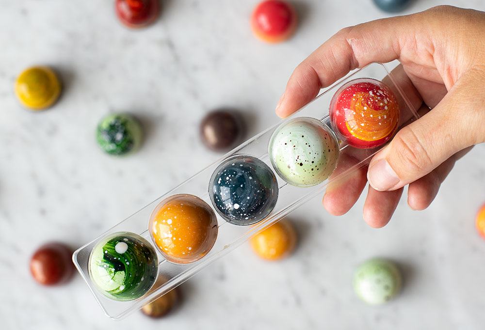 Dit betekent natuurlijk niet dat eindeloos chocolade eten gezond is voor je… Bovendien zijn onze bonbons niet het soort chocoladesnack dat je binnen 5 minuten opeet; het zijn stuk voor stuk kleine hapjes hemel. Elke bonbon is een genietmomentje, die zorgt dat de tijd heel even stilstaat en je enkel met je gedachten en gevoel op één plek bent: die hemelse handgemaakte bonbon met smeuïge vulling van verse ingrediënten.