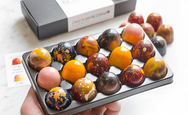 Al onze chocolade wordt met de hand gemaakt door onze chocolatiers. Dit maakt dat alle chocolade cadeaus uniek zijn, of je nu kiest voor een doosje bonbons of een chocolade hart. De vloeibare chocolade wordt eerst in een mal gegoten, waarna de chocolade wordt versierd met heerlijke toppings. Wanneer de chocolade uitgehard is, wordt het verpakt in een luxe verpakking.